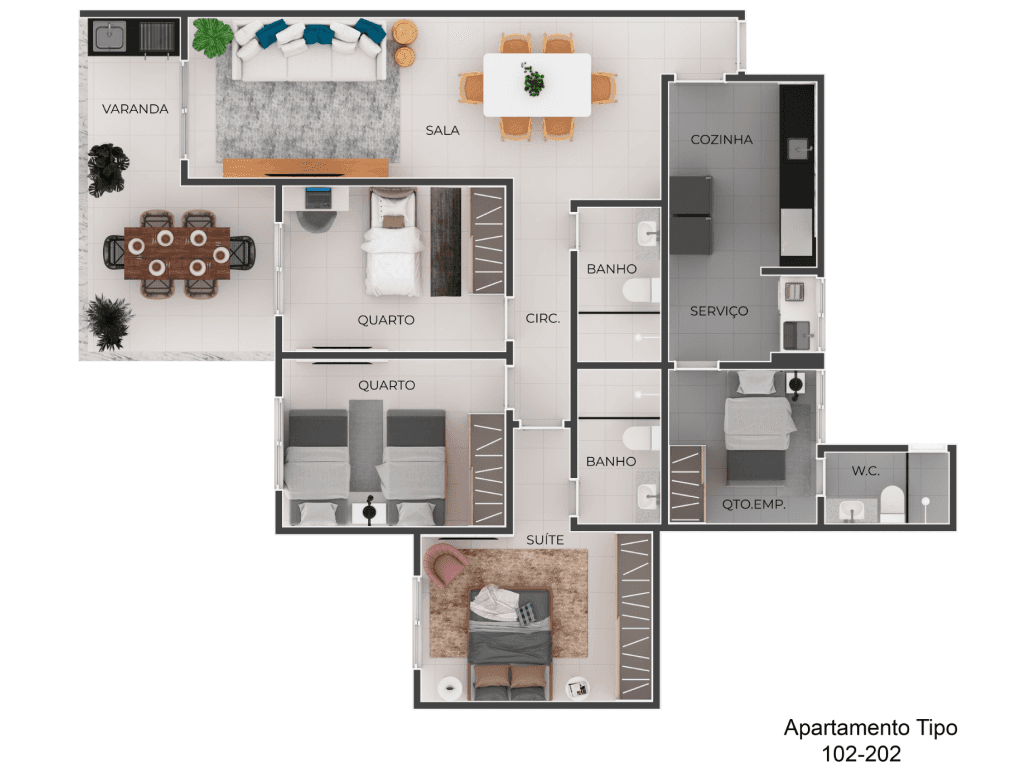 Visualize o layout completo de cada tipologia e entenda como aproveitar cada espaço
